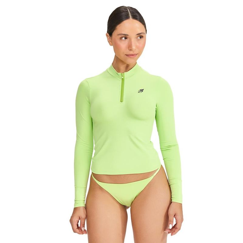 Camiseta desenvolvido para a praticante de surf e/ou outros esportes aquáticos e de areia. Com zÃper frontal, tecido com proteção uv 50+, possui cavas adaptadas para maior liberdade de movimento . Seu material em elastano fica mais justo ao corpo, garantindo conforto.