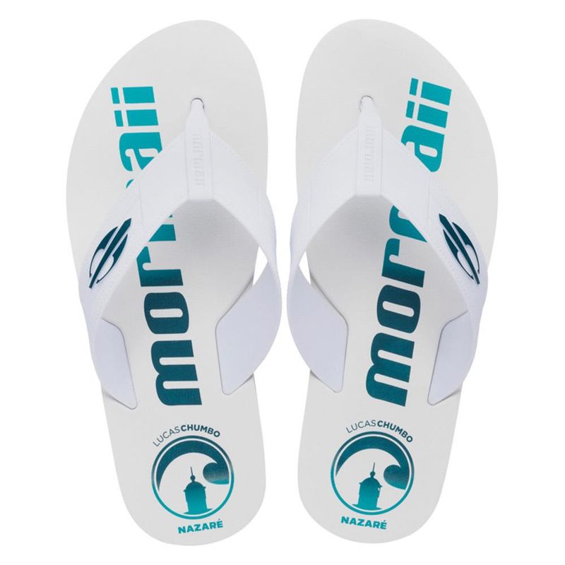 O mormaii nazaré by lucas chumbo dedo ad parte de uma colaboração com o surfista lucas chumbo, um dos grandes nomes do cenário mundial destacando-se na categoria de ondas grandes. o produto consiste em um chinelo de dedo com forquilha larga e texturizada que carrega o logo de mormaii, além de trazer grafia na palmilha com o big logo mormaii e grafia no calcanhar, ilustrando o farol de nazaré, local em portugal conhecido pelas suas ondas gigantes onde o surfista compete. enfeite e grafia possuem uma coloração em degradê, inspiração tirada pelo cenário natural e as nuances do céu relacionando ao estilo de vida do surf. 3 meses