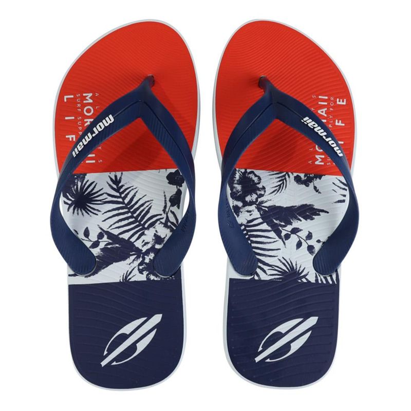 O chinelo Mormaii tropical graphics adulto é um chinelo de dedo com grafia na palmilha que carrega uma estética tropical, pegando referências nas linguagens de camisetas de surf masculinas. Possui logo Mormaii na forquilha. É um chinelo democrático para ser usado tanto no dia a dia como em ótimos dias de praia, piscina e sol.