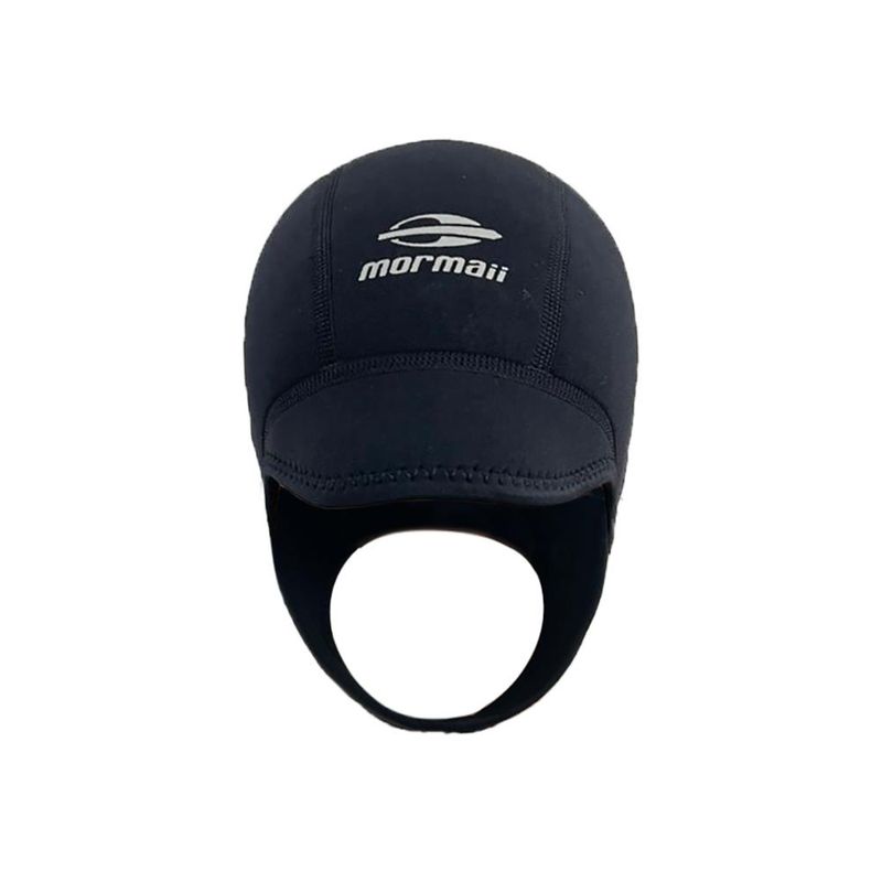 Gorro de policloropreno com aba Mormaii. Conta com acabamento em debrum em toda a sua extensão e costura tramada na união das peças. Ideal para praticar esportes no vento e no sol.