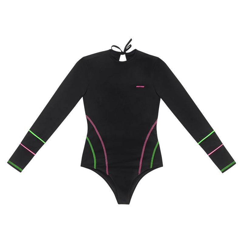 Maiô desenvolvido para a praticante de surf e/ou outros esportes aquáticos. Com fechamento em amarração nas costas etecido com proteção uv 50+, possui cavas adaptadas para maior liberdade de movimento na remada e recortes em trançador para maior detalhes e estilo. Seu material em elastano fica mais justo ao corpo, garantindo conforto. Além disso, possui termocolante com logomarca e detalhes em frisos neon.