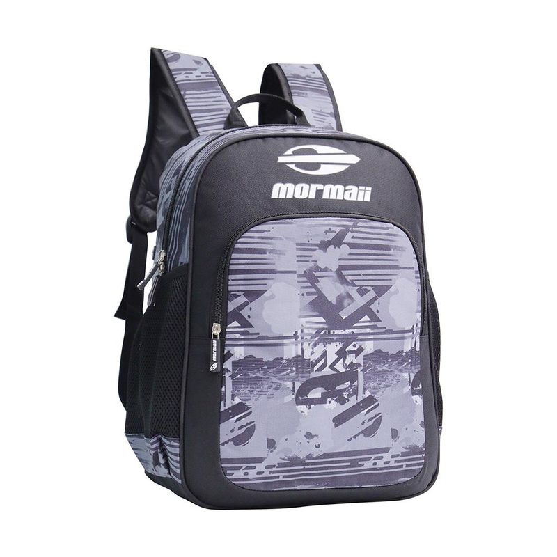 Mochila de costas estampada 20 litros Mormaii; dimensões 43 x 30.5 x 15cm; possui costuras duplas reforçadas, alça superior para ser pendurada, zíper bi-derecionais, alças nas costas acolchoadas e ajustáveis, bolsos laterais.