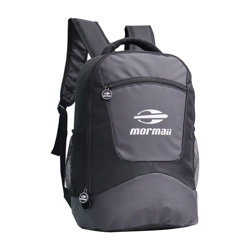 Mochila de costas estampada 23 litros Mormaii; dimensões 45.5x31x16cm; possui costuras duplas reforçadas, alça superior para ser pendurada, zíper bi-derecionais, alças nas costas acolchoadas e ajustáveis, bolsos laterais.