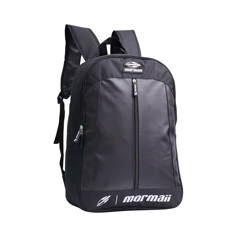 Mochila de costas estampada 23 litros Mormaii; dimensões 45.5x31x16cm; possui costuras duplas reforçadas, alça superior para ser pendurada, zíper bi-derecionais, alças nas costas acolchoadas e ajustáveis, bolsos laterais.