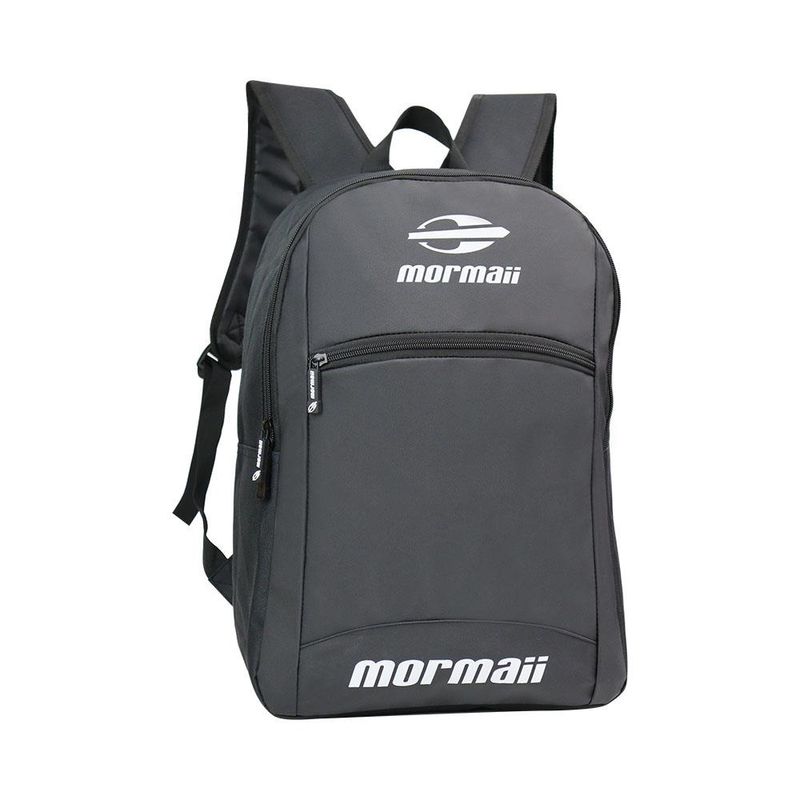 Mochila de costas 21 litros Mormaii; dimensões 45,5 x 31 x 15cm; possui costuras duplas reforçadas, alça superior para ser pendurada, zíper bi-derecionais, alças nas costas acolchoadas e ajustáveis, bolsos laterais, compartimento para notebook.