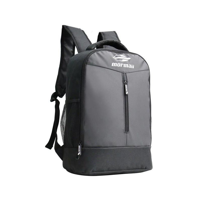 Mochila de costas 21 litros Mormaii; dimensões 45,5 x 31 x 15cm; possui costuras duplas reforçadas, alça superior para ser pendurada, zíper bi-derecionais, alças nas costas acolchoadas e ajustáveis, bolsos laterais, compartimento para notebook.