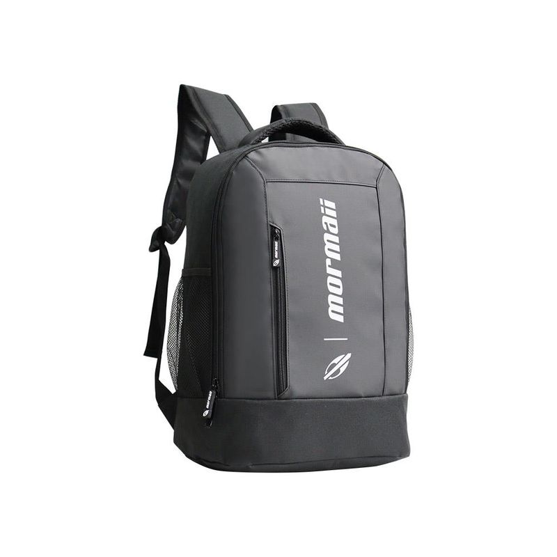 Mochila de costas 21 litros Mormaii; dimensões 45,5 x 31 x 15cm; possui costuras duplas reforçadas, alça superior para ser pendurada, zíper bi-derecionais, alças nas costas acolchoadas e ajustáveis, bolsos laterais, compartimento para notebook.