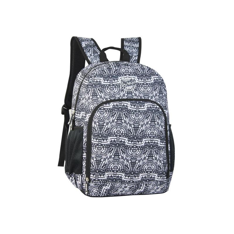 Mochila de costas estampada 20 litros mormaii; dimensões 42 x 30 x 15 cm; possui costuras duplas reforçadas, alça superior para ser pendurada, zíper bi-derecionais, alças nas costas acolchoadas e ajustáveis, bolsos laterais