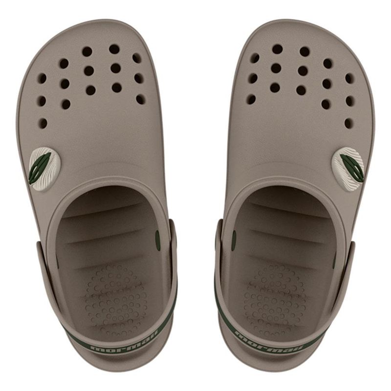 O babuch Mormaii vii conta com novo enfeite no cabedal, simulando um patch, que tem um jogo de relevos remetendo as ondas e a prancha de Mormaii sobreposta. Outro destaque é a tira traseira em pvc com botão que possibilita o efeito vai e vem, o que faz com que o produto possa ser usado de duas formas distintas: como sandália e como chinelo. Essa tira traz aplicação de serigrafia, o que possibilita trazer mais uma área de cor para o produto.