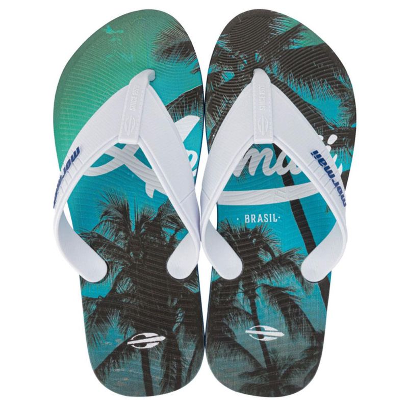 O chinelo Mormaii tropical graphics combina estampa fotográfica com lettering, trazendo o big logo da marca e elementos gráficos em traços finos e minimalistas, estética que é tendência no universo surfwear. O destaque fica por conta da cartela de cores, que valoriza os degradês que retratam o pôr do sol e a natureza. A forquilha, em pvc full plastic conta com tiras mais largas e detalhamentos que simulam uma dedeira têxtil, enquanto a sola em pvc expandido traz as clássicas texturas antiderrapantes de Mormaii, com formas ondulares.