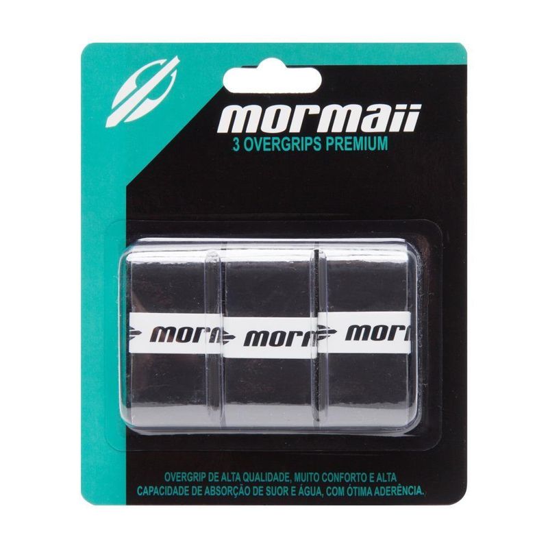Overgrip premium mormaii, feito em algodão e poliuretano, melhora a pegada e a deixa mais confortável. embalagem com 3 unidades.