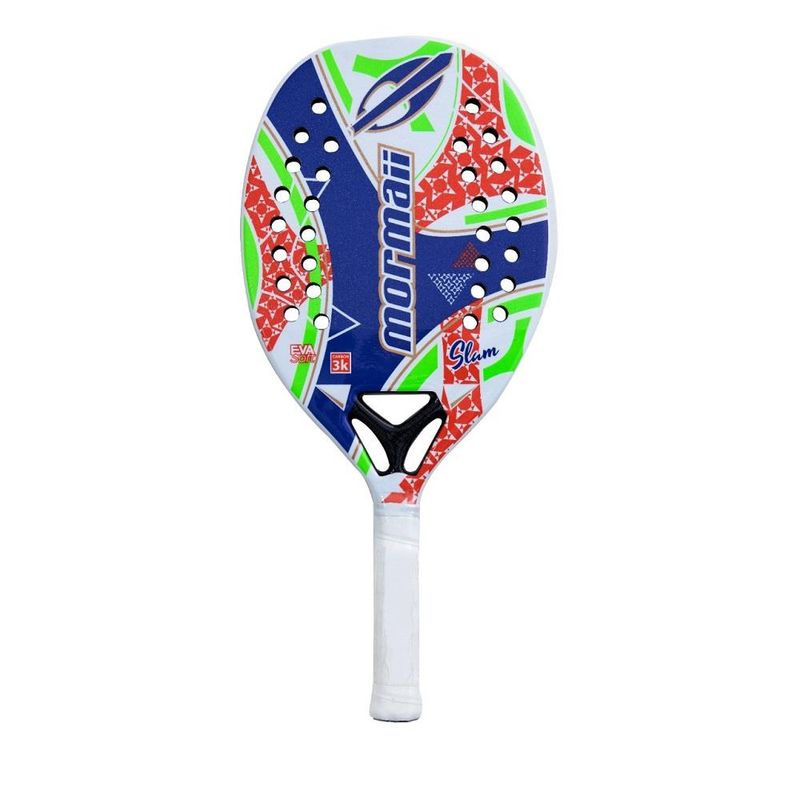 Raquete beach tennis mormaii slam; equipamento pensado e desenvolvido para prĂĄtica esportiva de beach tennis; frame em carbono e face em carbono 3k. eva de alta qualidade. Ăłtima elasticidade e resistĂȘncia. possui 30 furos e coração com 3 furos. recomendada para nĂvel avançado e profissional. boa potĂȘncia e Ăłtimo controle. capa protetora incluĂda.