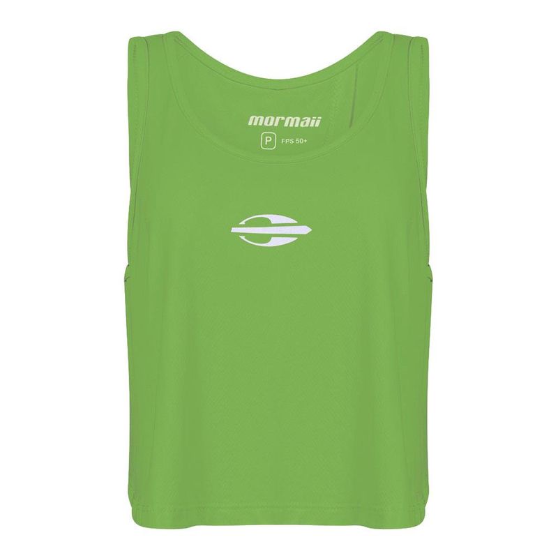 Regata feminina cropped beach sports Mormaii 2776, feita em tecido leve de secagem rápida com proteção uv, ideal para prática de esportes livres ou uso casual.