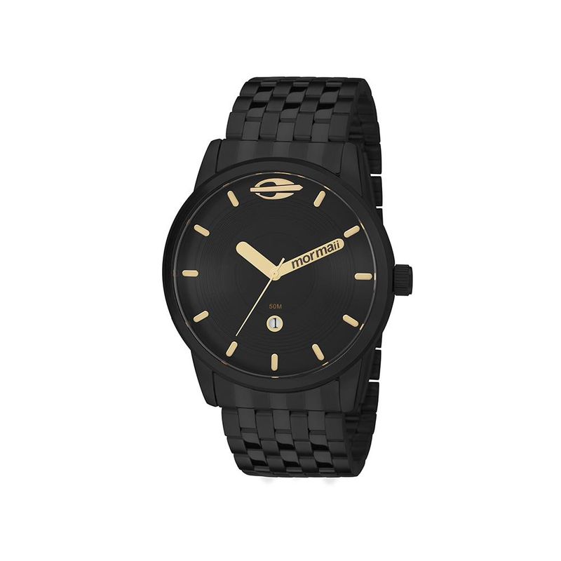 Relógio Mormaii da linha maui sunset, ideal para o dia a dia da mulher urbana! Modelo analógico todo em aço (caixa e pulseira) com banho preto, caixa 46mm e a prova dágua 50m. Detalhes em dourado no mostrador e calendário aparente.