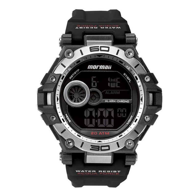 Relógio mormaii digital masculino - mo14073ac8p; caixa 53mm - preto(a) de polímero; pulseira de polímero - preto(a) - 20 atm - linha pro