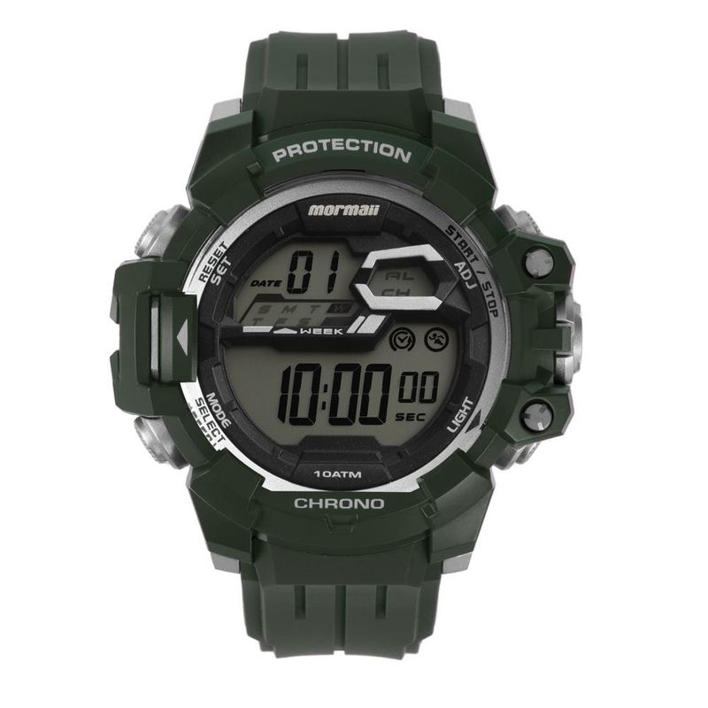 Relógio mormaii digital masculino - mo1168b8v; caixa 55,83mm - prata de abs; pulseira de polímero - verde - 10 atm - linha action