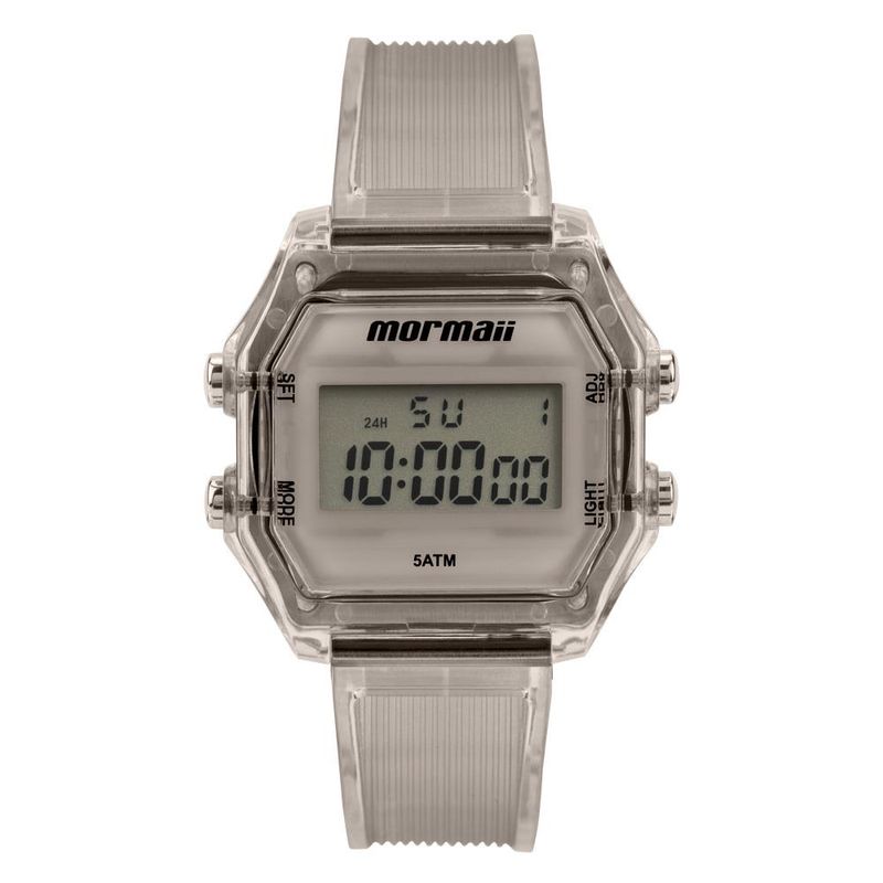 Relógio Mormaii vintage apresenta novo modelo super diferenciado, todo em polímero cinza translúcido e caixa de 35mm. É um relógio digital, o que facilita a leitura das horas, e possui funções como calendário, cronógrafo, alarme e luz noturna para ambientes noturnos. Um modelo perfeito para quem gosta de inovar!