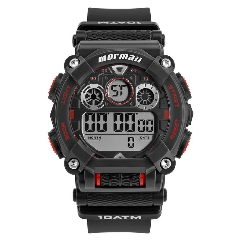 A linha Mormaii force chega com o primeiro relógio nacional aprovado em teste militar de resistência. Extremamente resistente a impactos intensos, ele possui uma caixa bem robusta e estrutura de proteção revestida com parafusos. Projetado para enfrentar qualquer terreno e desenvolvido para se jogar em condições extremas sem preocupações, os modelos da linha possuem funcionalidades indispensáveis para qualquer aventureiro, como calendário, cronógrafo, timer, dual time e luz noturna para ambientes escuros, além da resistência à água em até 100 metros.