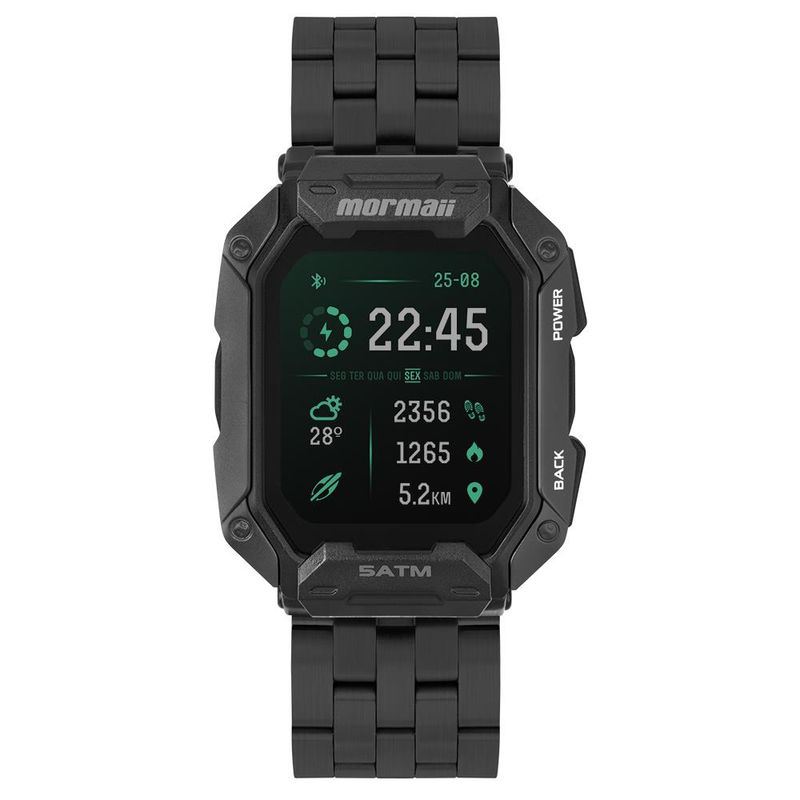 Descubra a combinação perfeita de estilo e durabilidade com este relógio. Com uma caixa robusta de polímero de 44mm e uma pulseira de aço inoxidável em 5 links, ele oferece resistência e elegância. Projetado para acompanhar você em qualquer situação, ele é resistente à água até 50 metros e possui uma incrível autonomia de bateria de até 15 dias. Seja no escritório ou na aventura, este relógio está pronto para qualquer desafio.